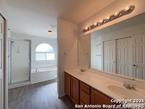 Welcome to this spacious and well-maintained 3-bedroom, 2.5-bath home situated on a desirable corner lot. With three living areas and two dining spaces, there's plenty of room to relax, entertain or set up a dedicated workspace. Upstairs, all three bedrooms provide privacy and convenience, along with a full laundry room equipped with washer/dryer hookups. The primary suite features high ceilings and a roomy ensuite bathroom complete with a double vanity, garden tub, walk-in shower and generous closet space. The kitchen is fully equipped with an electric stove, microwave, dishwasher and a comfortable eat-in dining area. Flooring includes a mix of carpet and durable vinyl for a balance of comfort and functionality. Additional highlights include an HVAC system with a programmable thermostat, an alarm system and a two-car garage with a door opener. Out back, enjoy a covered patio perfect for lounging or grilling, surrounded by mature trees, gutters and a privacy fence that adds a quiet, secluded feel. Located near convenient shopping and community amenities, this home is ready for you to move in and make it your own. All information in this marketing material is deemed reliable but is not guaranteed. Prospective buyers are advised to independently verify all information, including property features, availability to their satisfaction. *some marketing photos may be virtually staged images*"