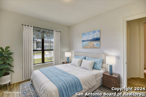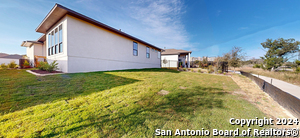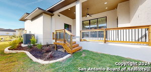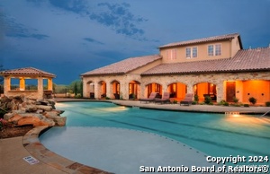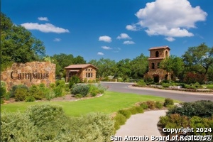 Beautiful new single-story Sitterle-built home located in the gated El Sonido at Campanas enclave which is part of the larger Cibolo Canyons community. Offering the very popular 'Carrara' open floor plan and located on a greenbelt with trees providing privacy. Features 2,511 square feet and an impressive covered patio with another +/- 337 square feet. The combined Kitchen, Living, and Dining areas truly do create an impressive Great Room. The Kitchen features high-end Jenn Air appliances including a gas range with a 48" top with 5 burners and double ovens, JENNAIR Panel-Ready 42" Built-In Side-By-Side refrigerator, under and above cabinet lighting, and Quartz countertops. The Living/Dining area has 12' ceilings and sheetrock beams with beautiful 10' high sliding doors opening onto the spacious and private covered patio. The Primary suite offers a spa-like bathroom with a dreamy rectangular freestanding tub, generously sized frameless glass-enclosed shower, separate vanities, and an oversized walk-in closet. The Game room or 'Flex' room has a wet bar, powder bath, and a door to the covered patio and it's pre-wired for surround sound. The 3rd bedroom would also make a great Study. Wood-look tile is featured throughout the house. No carpet. No steps. Living in this community will be relaxing since the HOA take care of maintaining the front and back yards! They even provide new flowers twice a year, re-mulching every year and always keeping it mowed. Sweet! This home also has views of the J.W. Marriott TPC Resort.