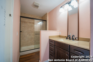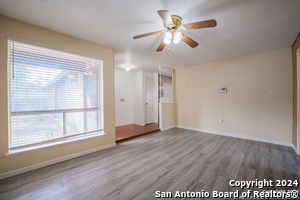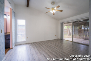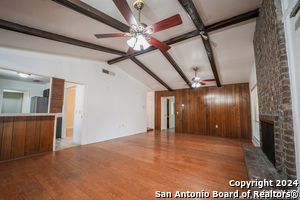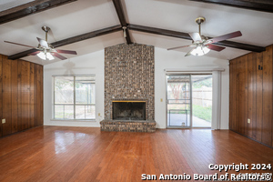 Welcome to 12515 La Bodega St, a beautifully maintained 4-bedroom, 2-bath home offering 1,660 square feet of comfortable living space in a well-established San Antonio neighborhood. Inside, you'll find a spacious living area highlighted by warm wood flooring and a charming brick fireplace-an inviting focal point perfect for relaxing or entertaining. The open layout flows effortlessly into a bright kitchen with a convenient pass-through, making everyday living and hosting a breeze. The private primary suite serves as a true retreat, featuring direct access to a covered patio, a generous walk-in closet, and ample room to unwind. Three additional bedrooms provide flexibility for family, guests, or a home office. Step outside to enjoy two covered patios-one off the living room and another off the primary suite-overlooking a large, private backyard shaded by mature trees. This serene outdoor space is ideal for gatherings, play, or quiet evenings at home. A side-entry two-car garage enhances both functionality and curb appeal. Conveniently located near I-35, Loop 1604, and Wurzbach Parkway, this home offers easy access to major employers, shopping, dining, and nearby military bases including Randolph Air Force Base and Fort Sam Houston. Everyday essentials such as H-E-B, local retail, parks, and highly regarded schools are just minutes away. This home delivers the perfect balance of comfort, convenience, and location-an excellent opportunity in one of San Antonio's most accessible areas.