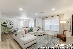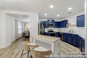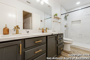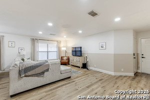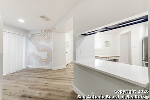 Welcome to this beautifully updated single-story home offering 5 bedrooms, 2 bathrooms, and 2,176 square feet of living space in the heart of San Antonio. Thoughtfully redesigned with modern finishes throughout, this home is truly move-in ready. Step inside to discover new flooring throughout, fresh interior and exterior paint, and stylish updated lighting and hardware. The kitchen features white quartz countertops and stainless steel appliances, creating a bright and functional space ideal for everyday living and entertaining. Both bathrooms have been fully remodeled with elegant tile work, including a walk-in shower in the primary suite. Additional upgrades include new 2-inch blinds throughout and 5-inch baseboards for a clean, finished look. The exterior has also been refreshed with updated landscaping, dusk-to-dawn exterior light fixtures and privacy fencing, enhancing both curb appeal and functionality. Major system improvements provide added peace of mind, including a 3 year old shingle roof, electric water heater and a 6-year-old HVAC system with a transferable service and maintenance warranty. Conveniently located near the Medical Center, Leon Valley, shopping, dining, and major highways, this home offers comfort, style, and accessibility all in one. Don't miss the opportunity to make 7035 Valmont Dr your next home and schedule your private showing today!